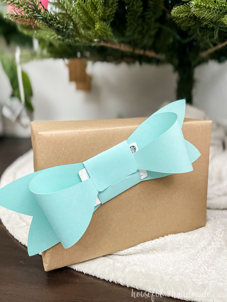 In the past I have shared some fun gift card boxes, but today is a new one. Instead of a box for your gift card, why not wrap it inside a giant bow?!